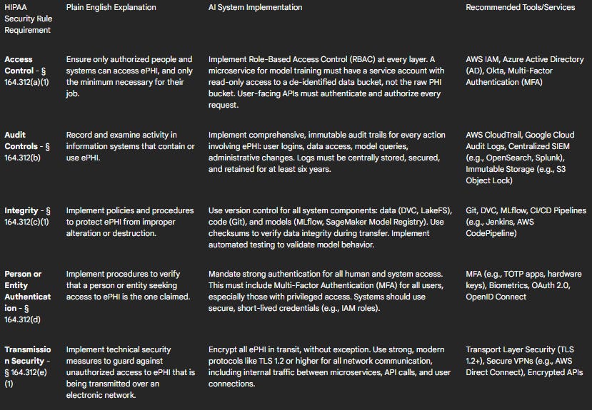 Data Encryption in AI Workflows: Encryption is a non-negotiable technical safeguard. All ePHI must be encrypted both at rest and in transit.