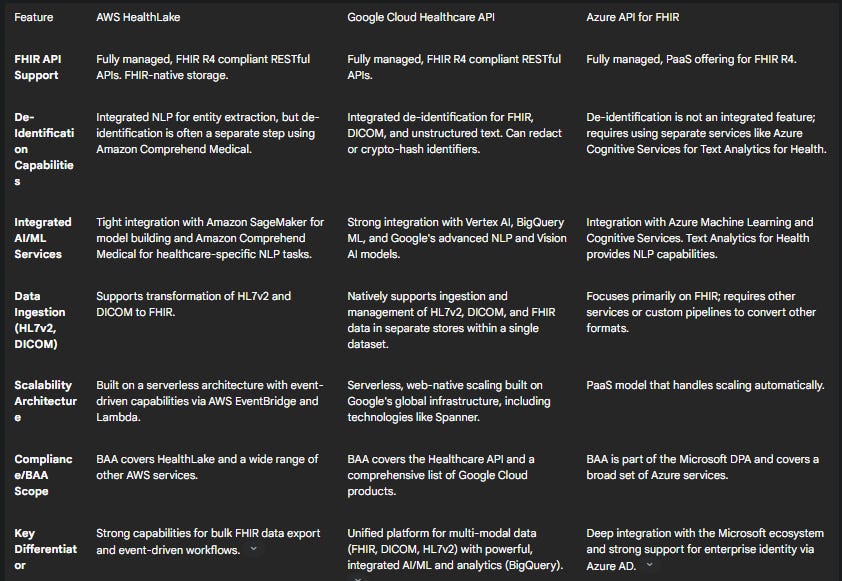 Table 2: Comparison of Managed Healthcare Cloud Platforms